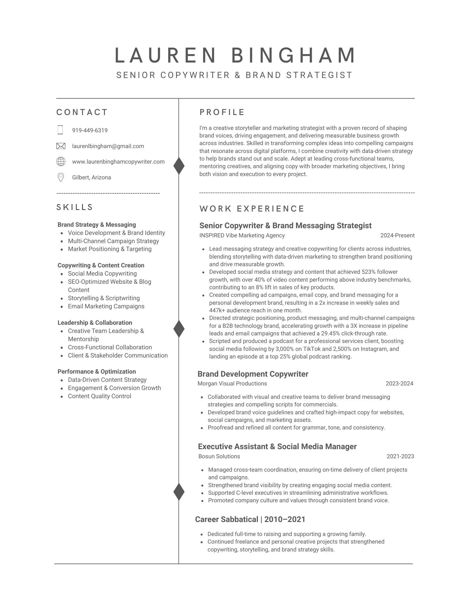 Lauren Bingham, Copywriter